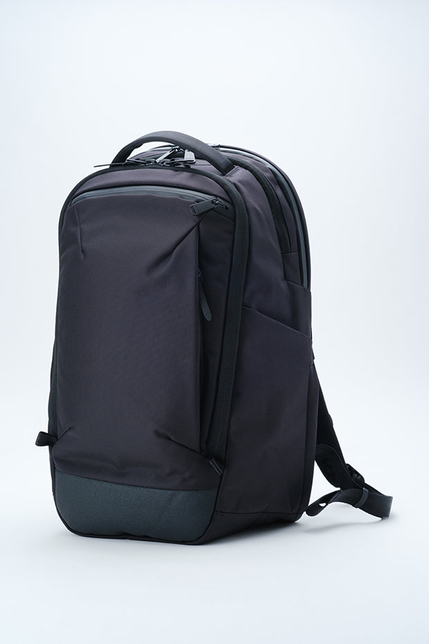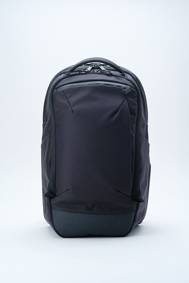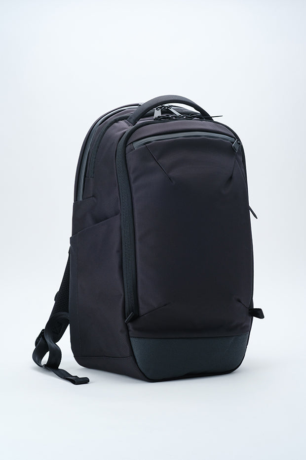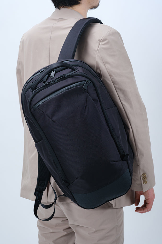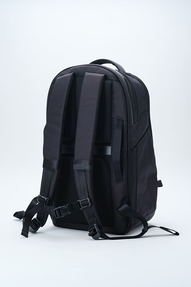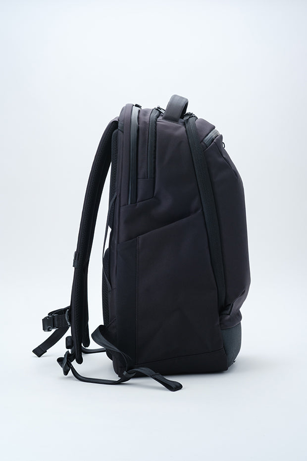 「通勤中の突然の雨にも、長時間の移動にも、出張にも。考え抜かれた収納と圧倒的な耐水性で、あなたのビジネスライフを支える全天候型バックパック」