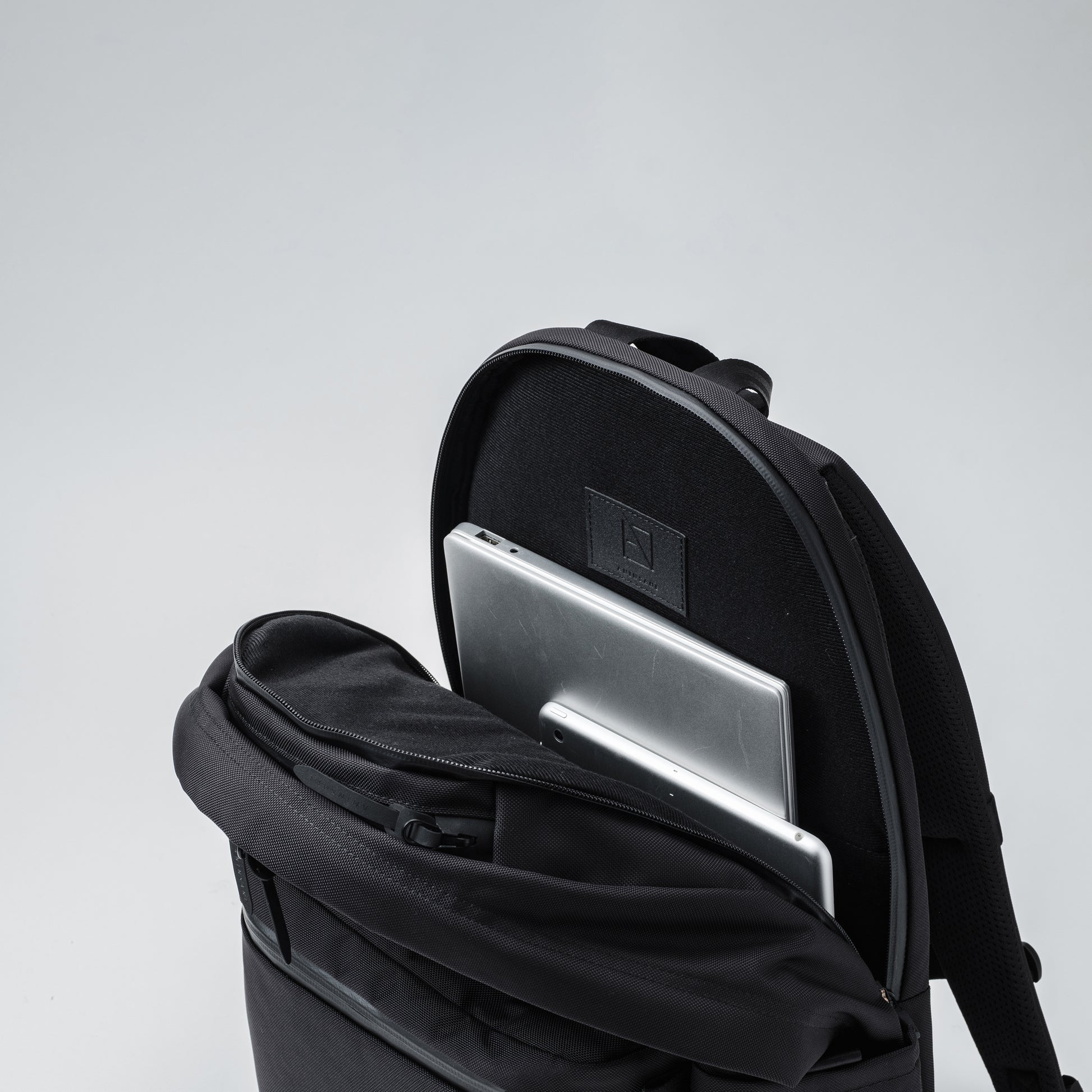 メインルームに配置されたPCやタブレット用のポケットは底上げを図ることで、PCやタブレットが床にあたりにくくなります。もはや命の次に重要なガジェット類を保護すためのさりげない気遣いを加えました。