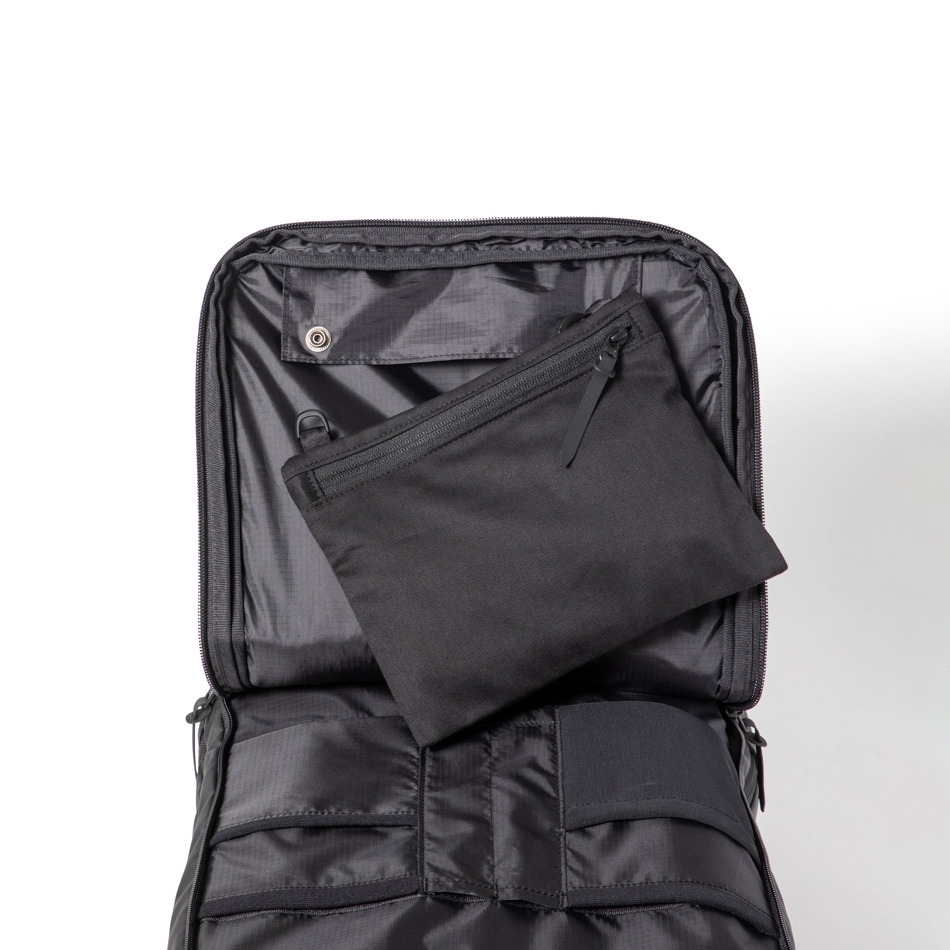 サブルームには細かい仕切りポケットを充実させています。Wi-Fiルーター、イヤホン、充電ケーブル、携帯電話などのガジェット類をすっきりと収納出来ます。