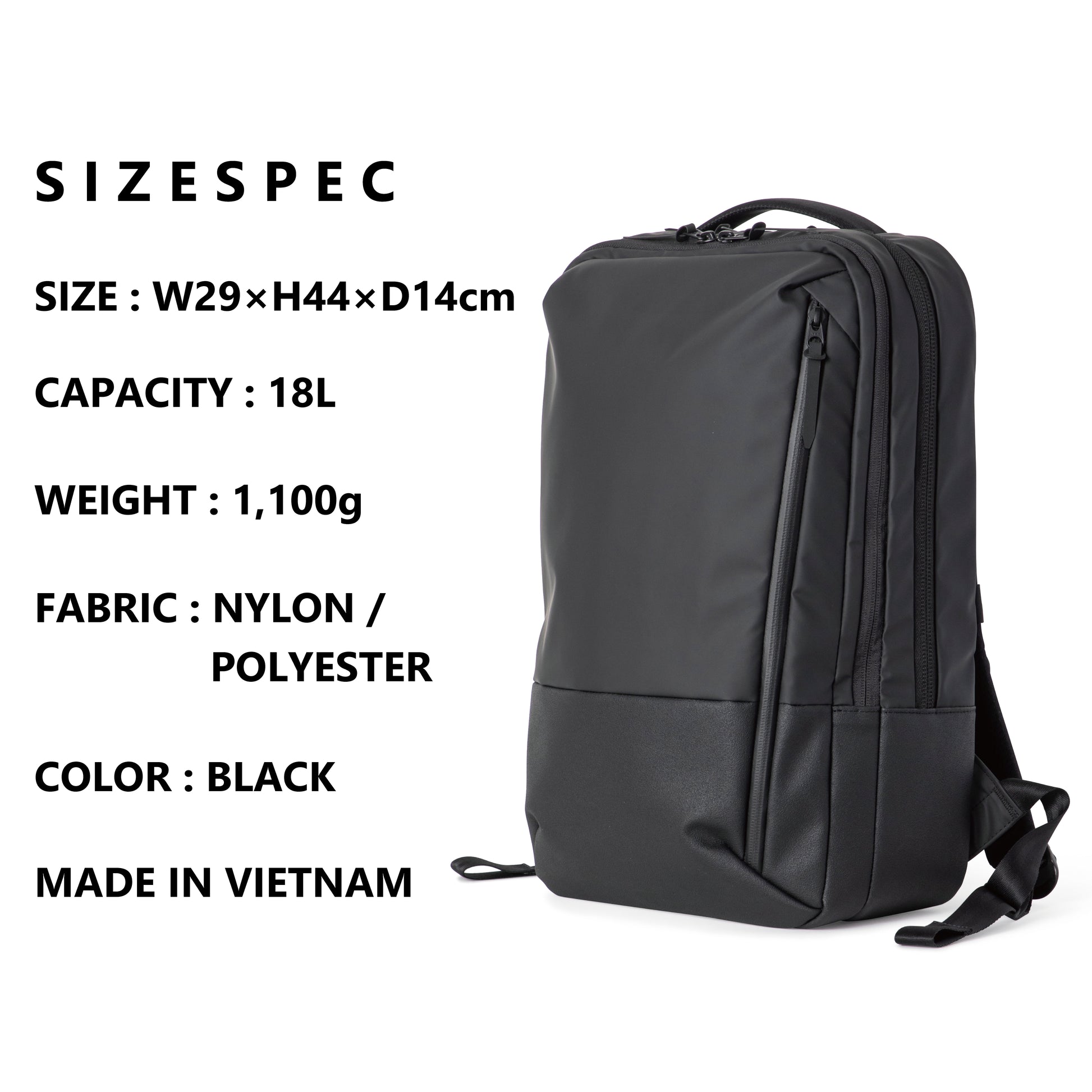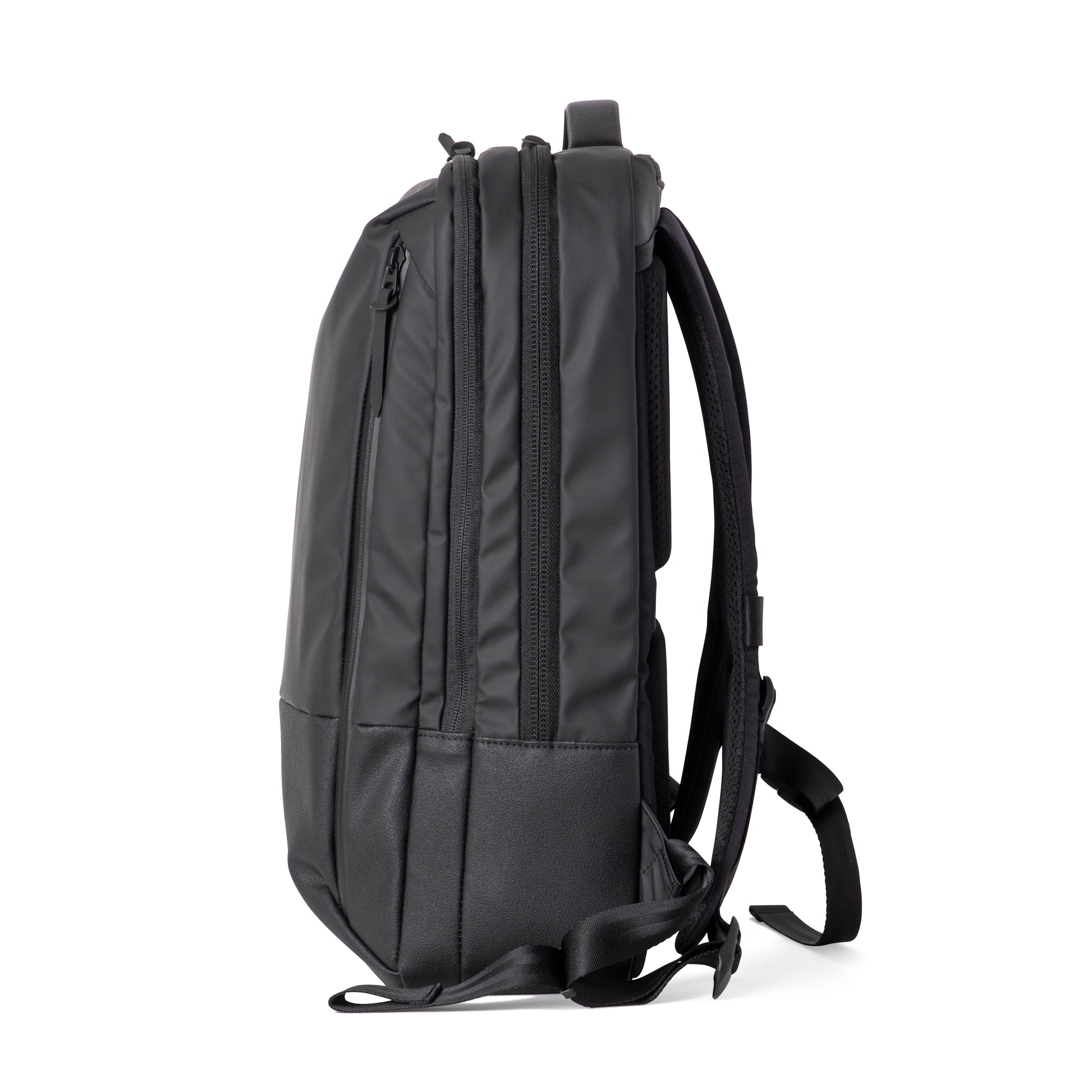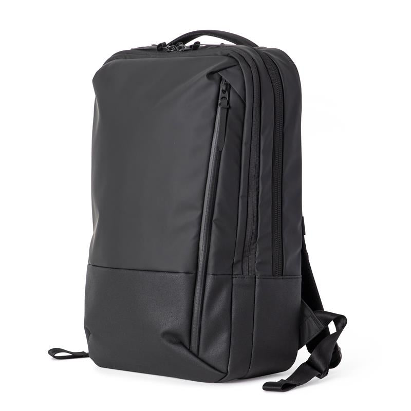 メイン生地にポリカーボネート加工を施し、フラットでマットな質感は決して主張し過ぎないほど良い存在感を醸します。また圧倒的な耐水性が生まれ、表面がフラットになるゆえ、急な雨や汚れに強く、清潔感をキープしやすい為、ビジネスマンには強い味方となります。