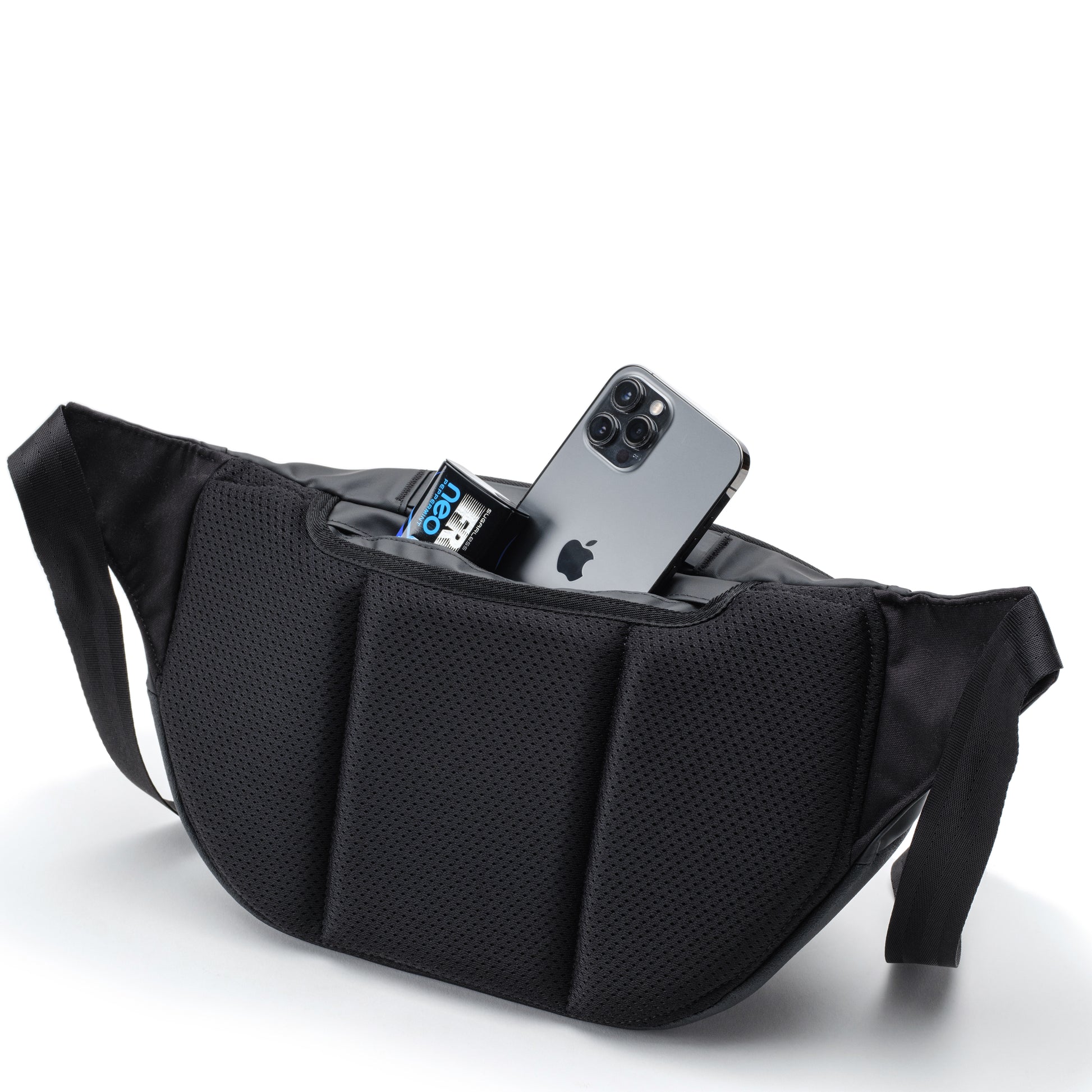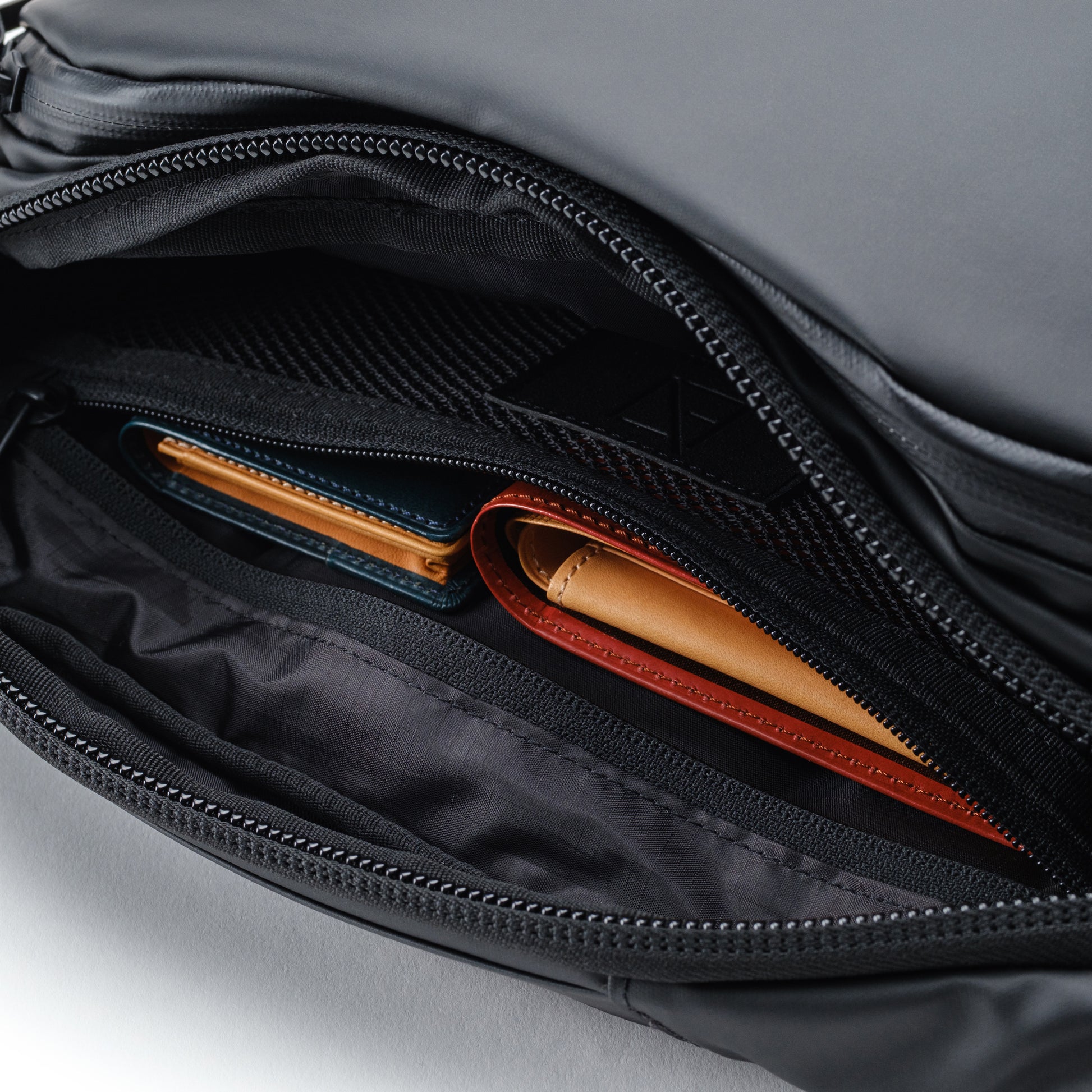 身体への接地面に配置した背面ポケットは頻繁に出し入れする荷物を取り出しやすく防犯性が高いです。裏地には起毛素材を採用する事でデリケートなガジェット類を保護します。