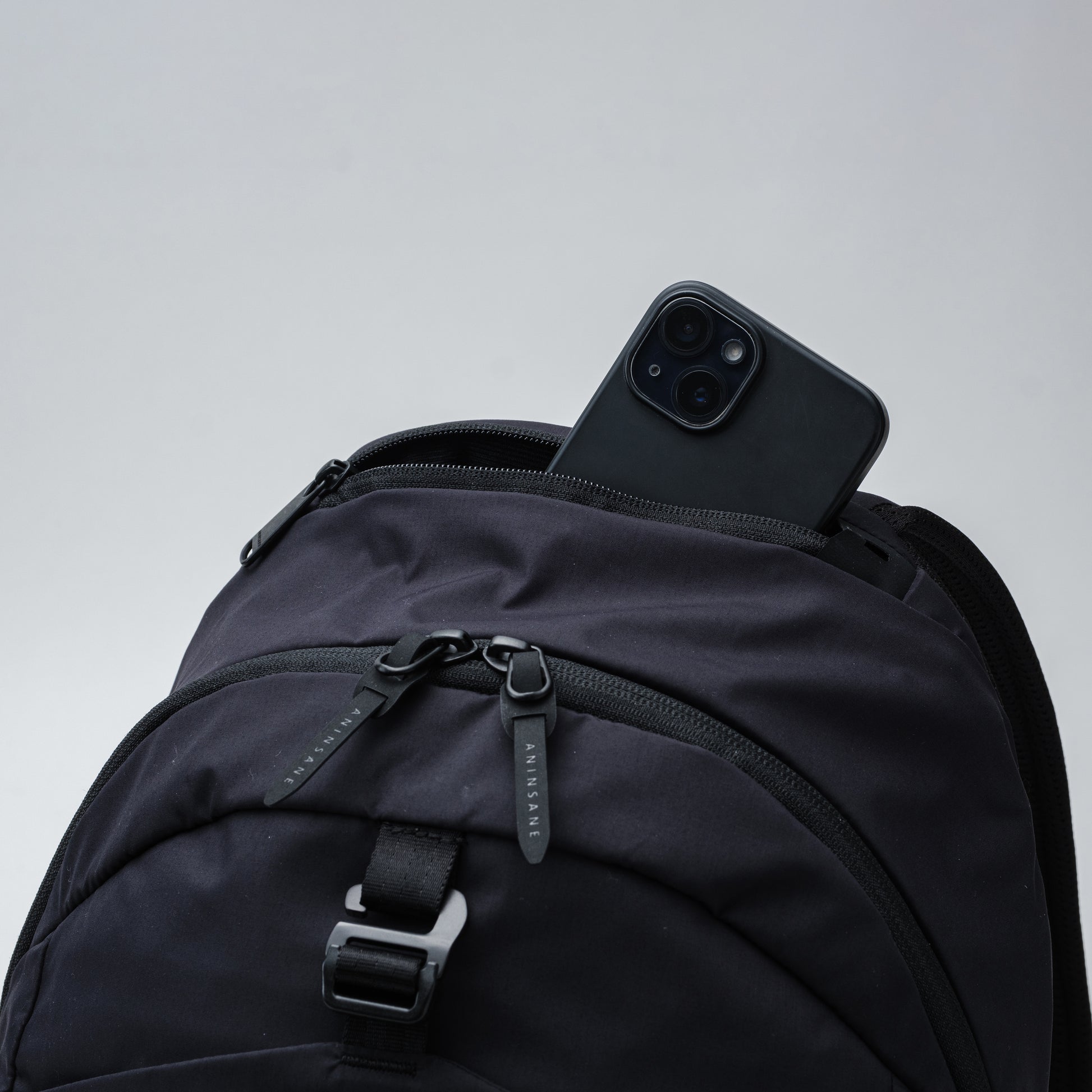満員電車内での前背負いでも取り出しやすいトップポケットには起毛素材を採用しました。それによりガジェットの保護性も高いです。