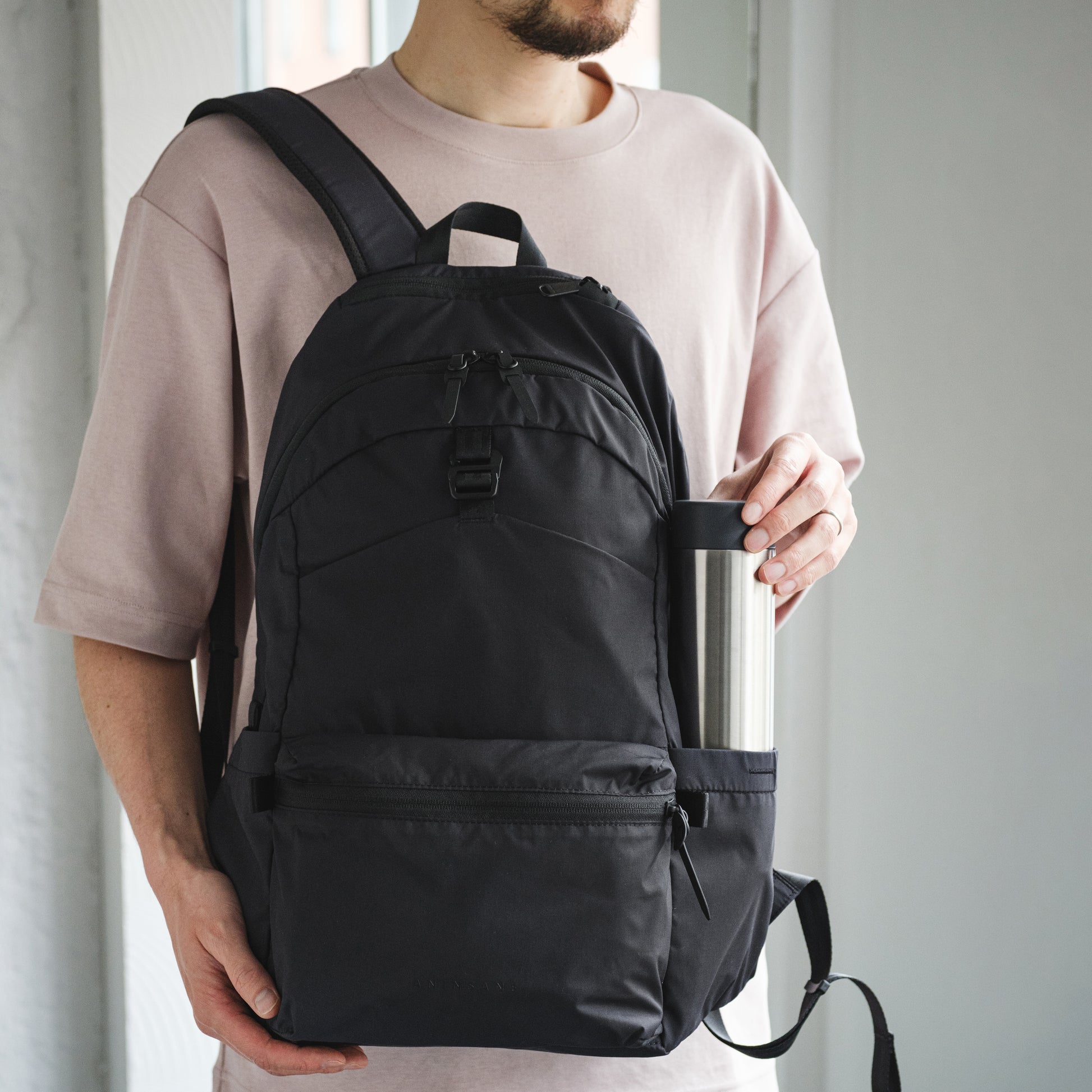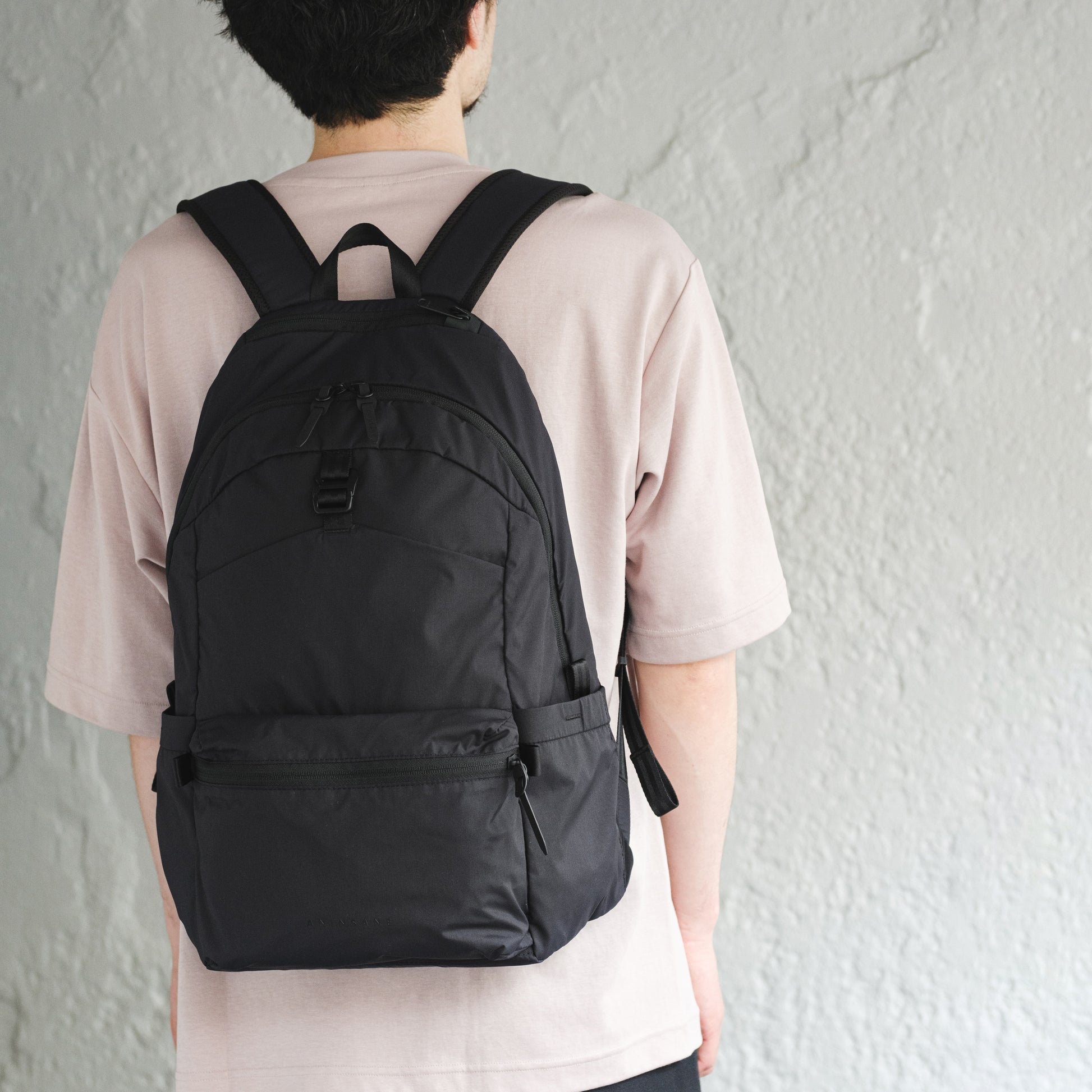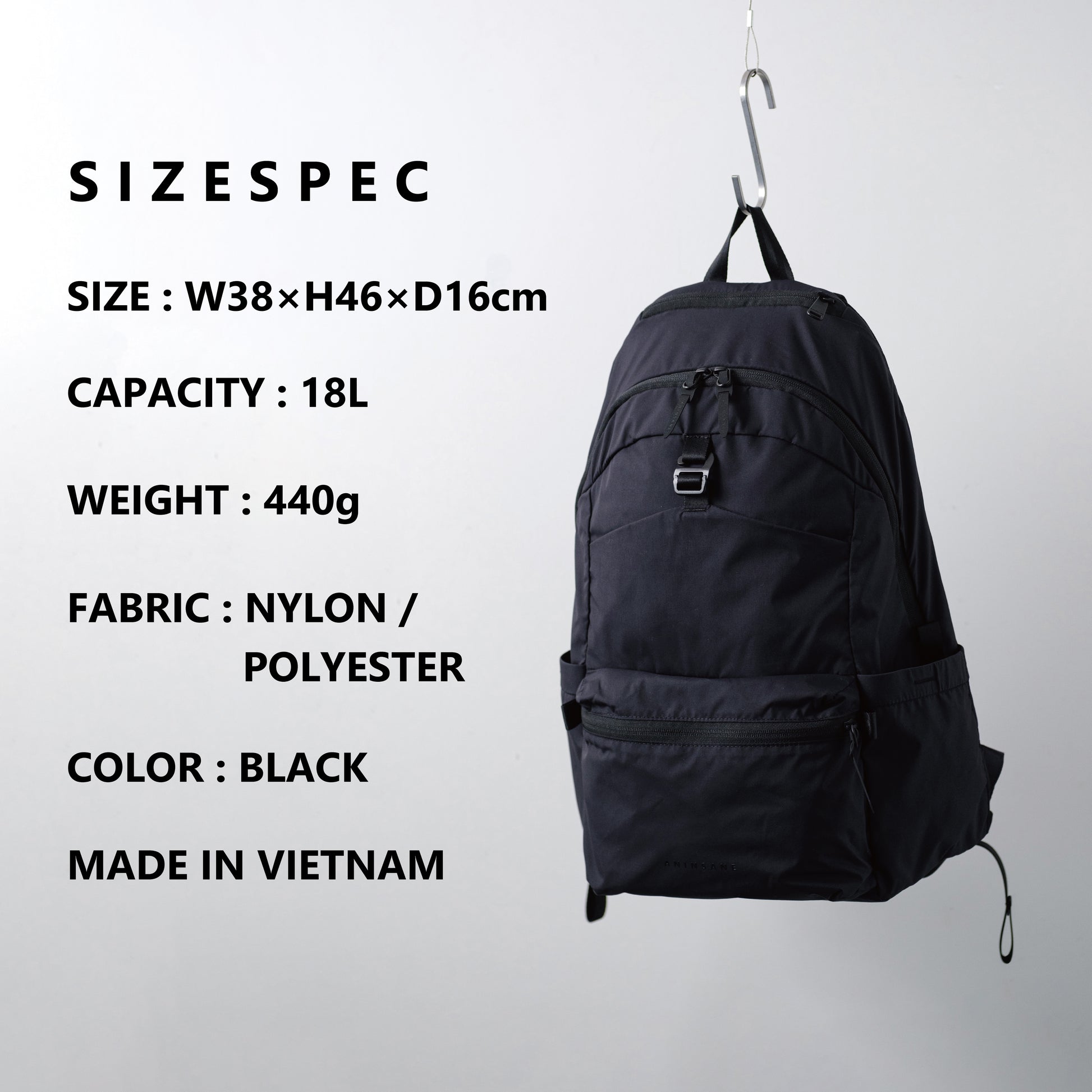 極薄のCORDURA NYLONを使用した、耐久性が高く500mmペットボトルより軽いデイパック。 パッカブル仕様になっており、フロントポケットに本体を畳んで収納する事が可能です。通常のパッカブルバッグとは比較にならない収納力を備えており、旅行や出張時、お使いのリュックなどに入れておけば、出先でのサブバックとしてもご使用いただけます。