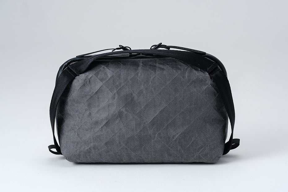 アメリカの CHALLENGE SAILCLOTH 社のプロデュースする ULTRA™は世界最強の繊維とされる UHMWPE( 超高分子量ポリエチレン ) を使用しており、高次元の軽さを持ちながら、耐摩擦性、耐引裂性に優れる素材です。また裏面には「Ultra-PE CrossPly」という「X-Pac」のような格子の入ったシート状のフィルムを裏面に貼り付けることで、適度な剛性と強固な防水性を生み出しています。同重量比でスチール ( 鋼鉄 ) の約 15 倍の強度、比重 1.0 未満で水に浮くほど軽量です。※参考数値 : 引張 2,400N以上 / 引裂 64N以上 / 耐摩耗 10 万回以上 / 耐水圧55,000mm 以上